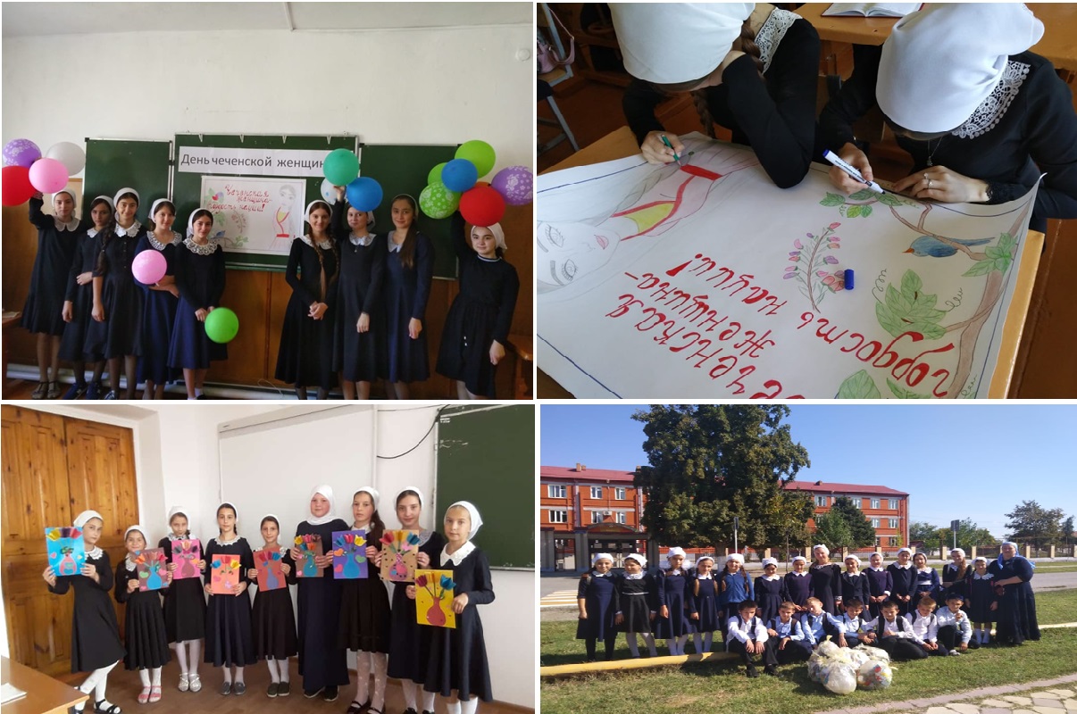 В течение недели в школе прошли мероприятия, посвященные Дню чеченской женщины. Во всех классах прошли беседы, классные часы на тему «Дуьненанкъинхетам – Нана», «Чеченская женщина – гордость нации». До учащихся была доведена сущность праздника. Чествование чеченских женщин – это дань уважения женщинам, которые во все времена на своих плечах выносили тяготы и лишения жизни.