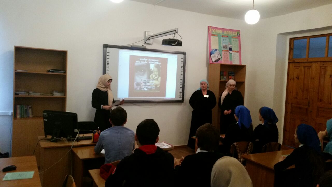 01.12.2016В МБОУ «Новотерская СОШ им. Э. Хамидова» с 28 ноября по 3 декабря прошли мероприятия, приуроченные к Всемирному Дню борьбы со СПИДом. Во всех классах прошли тематические беседы, классные часы по профилактической роботе ко Дню борьбы со СПИДом.