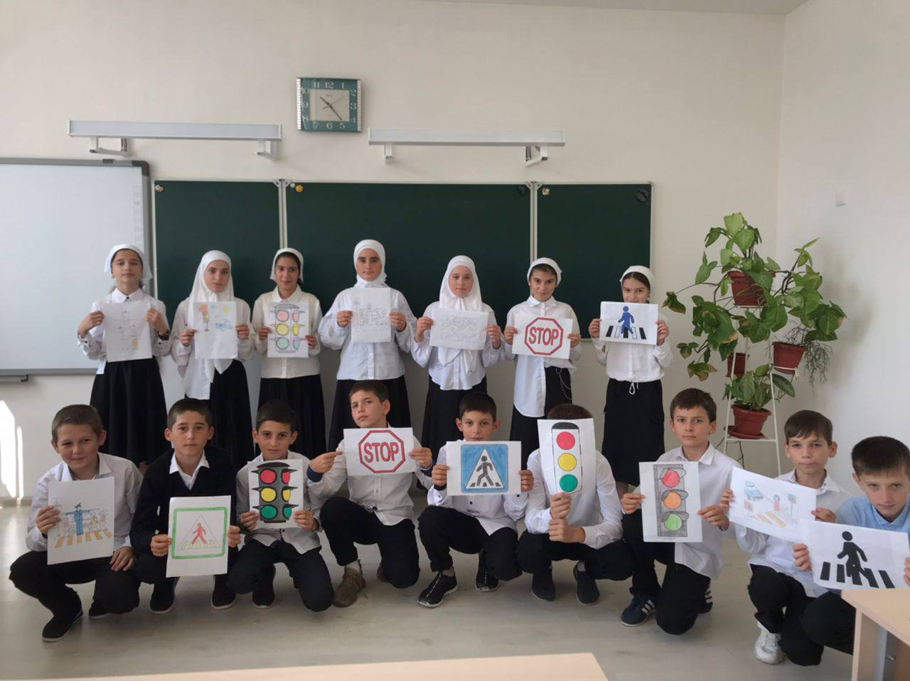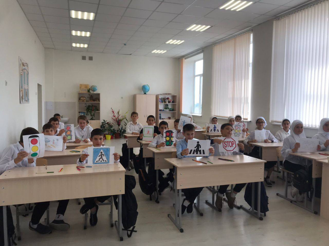 С целью профилактики детского дорожно-транспортного травматизма на уроке ИЗО Хусейнова Р. А. провела конкурс рисунков «Знаки дорожного движения».
