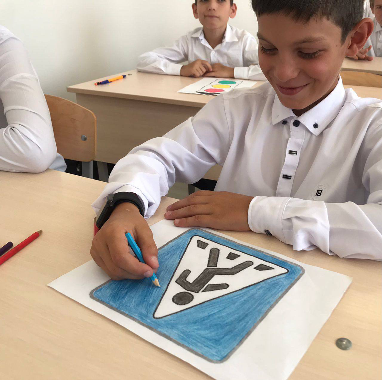 Учащиеся с интересом рисовали известные знаки, а после рассказали об их значении.