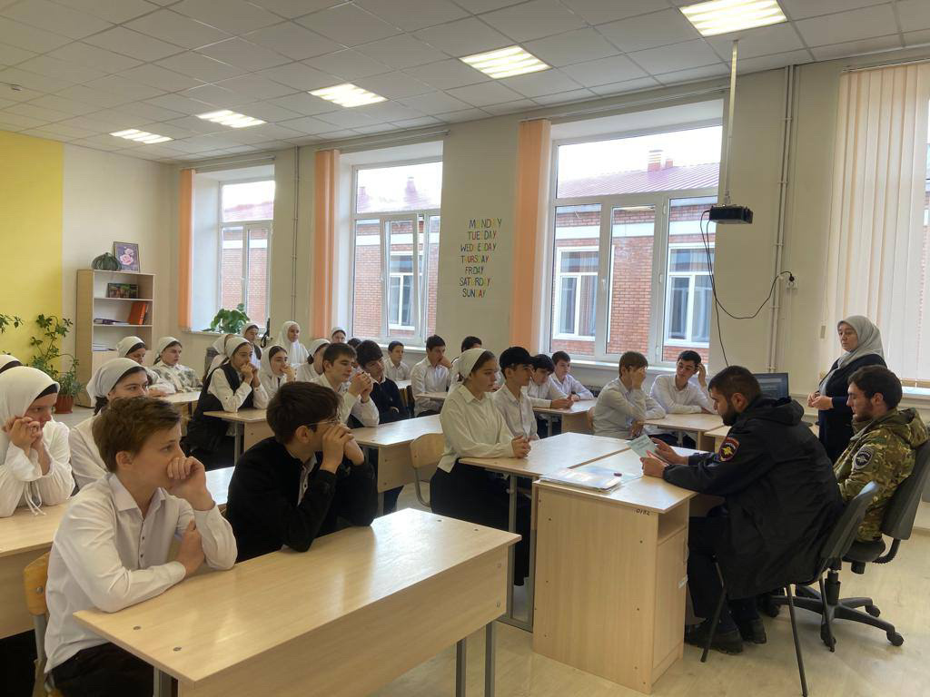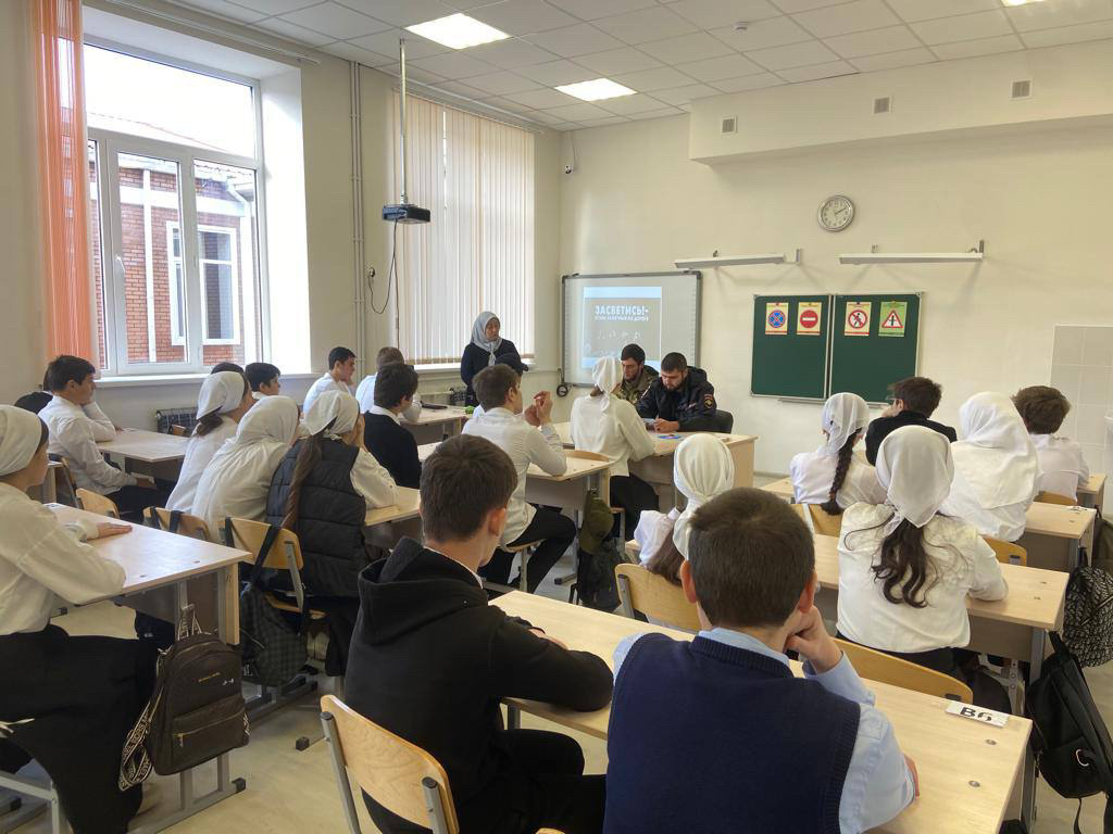 Представители ОП села Новотерское Турпалханов А.Р. и Писаев У.Х. провели с обучающимися 8-х классов профилактическое мероприятие по теме: «Засветись и стань заметным».
