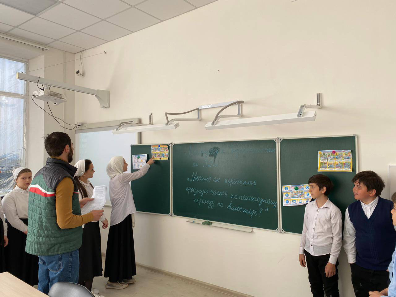 На последних уроках учителя предметники проводят «Минутки безопасности» по ДДТТ, закрепляют с учащимися знания правил дорожного движения.