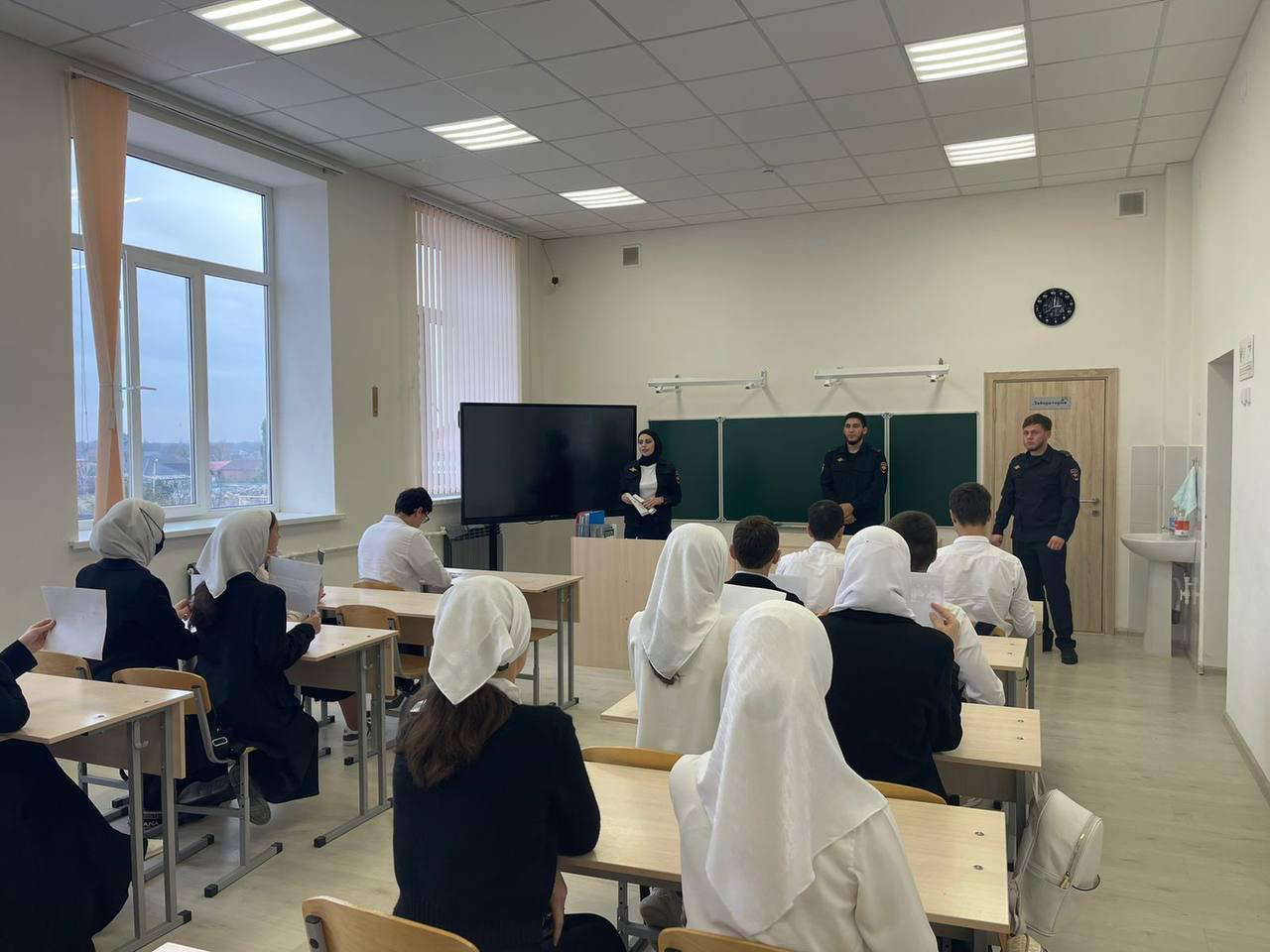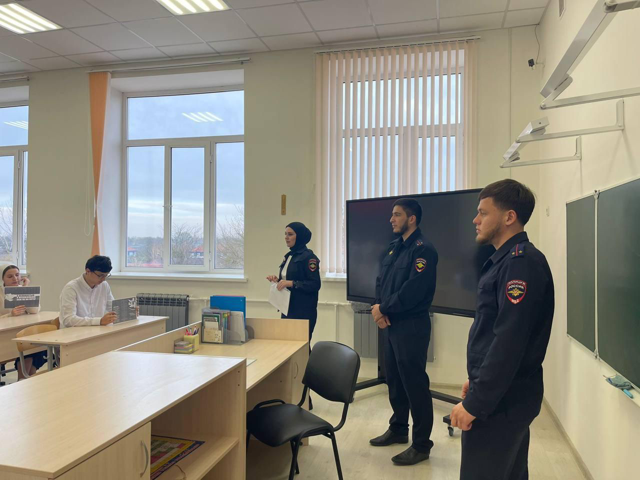В МБОУ «Новотерская СОШ им. Э. Хамидова» с обучающимися 9-11 классов прошла разъяснительная беседа по теме: «Как не попасть в лапы зависимостей».На встречу с школьниками пришли: лейтенант полиции инспектор ПДН Джалуева Х.А., УУП Мутиев М. А. и ОУР Атабаев.