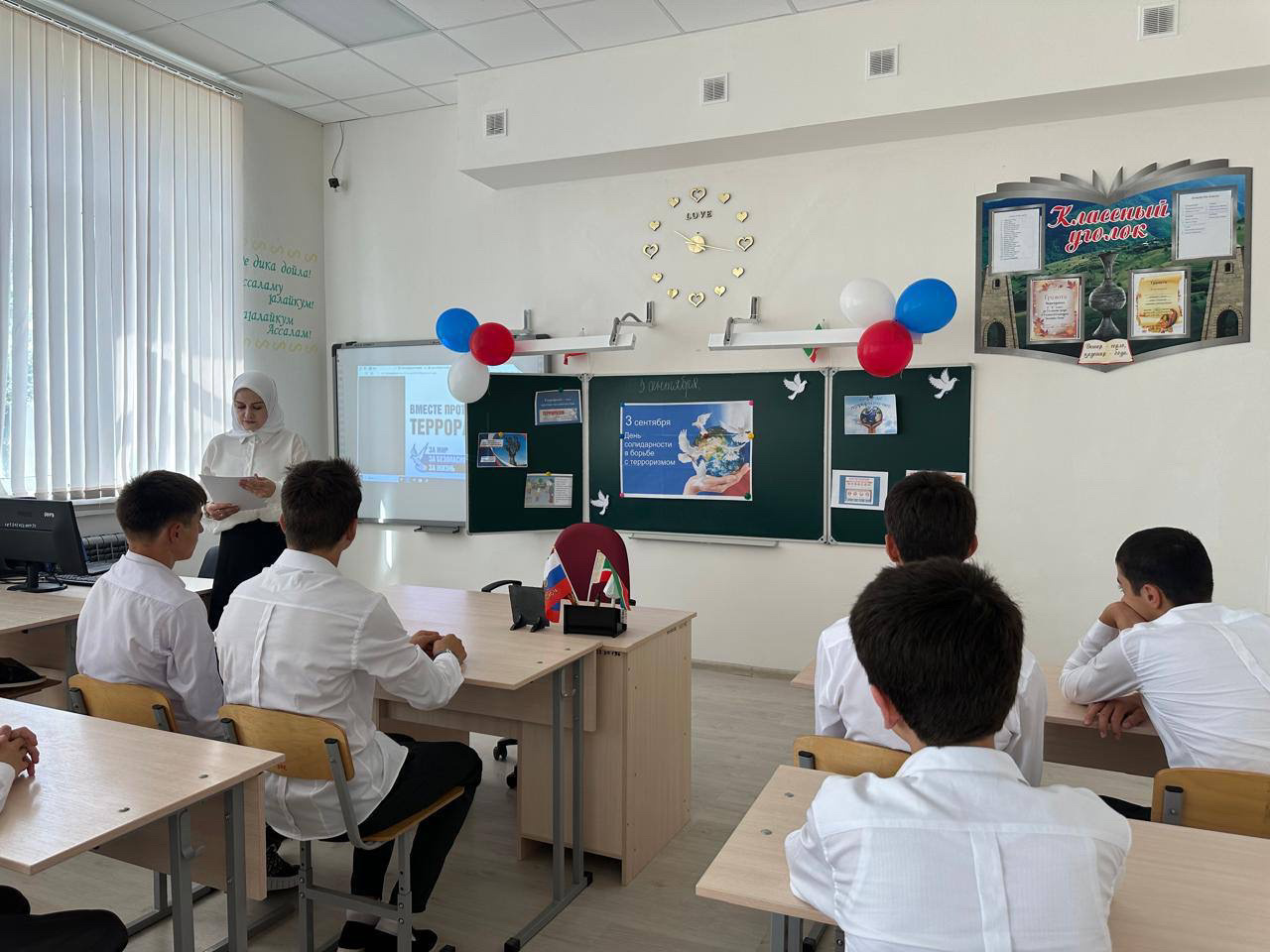 Классный руководитель 9 «б» класса Межиева А. И. провела с учащимися классный час приуроченный Дню солидарности в борьбе с терроризмом.