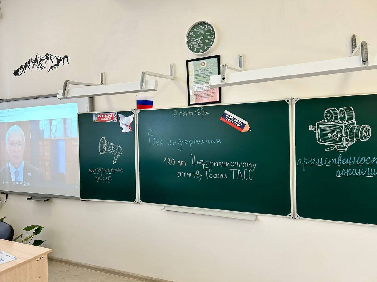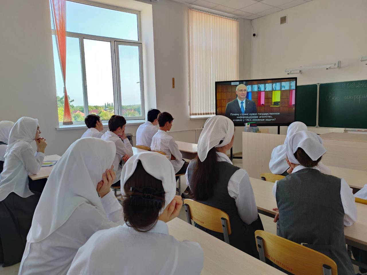 9.09.2024 в МБОУ «Новотерская СОШ им. Э. Хамидова» прошли беседы по теме «Век информации. 120 лет информационному агентству России ТАСС».