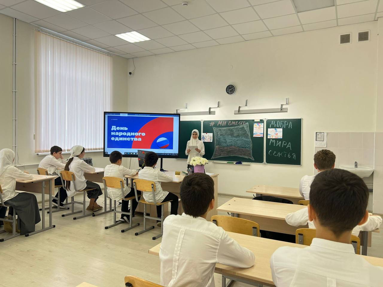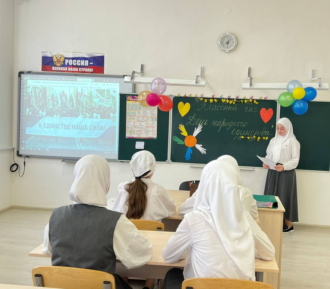 В «МБОУ Новотерская СОШ им. Э. Хамидова» прошли классные часы, приуроченные Дню народного единства.
