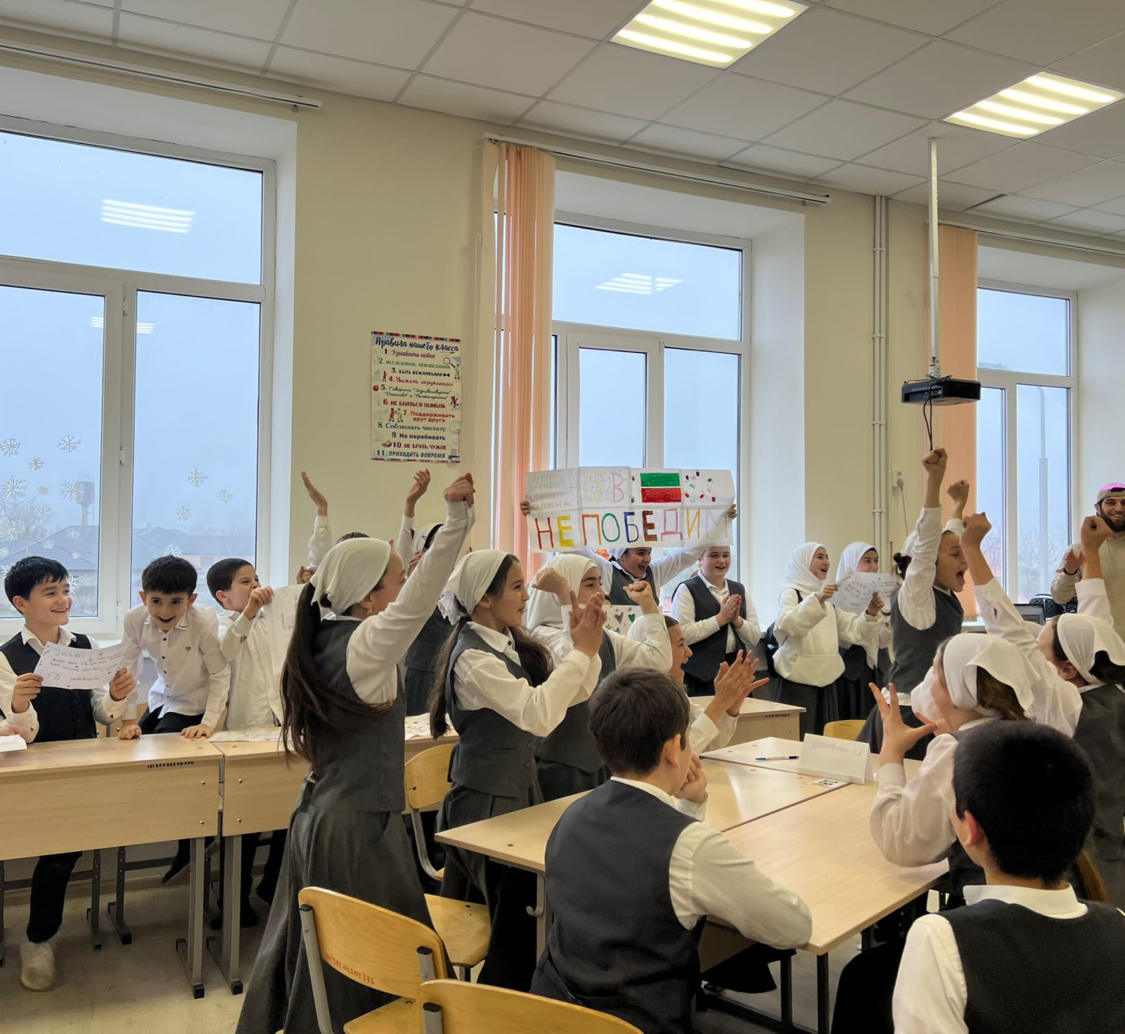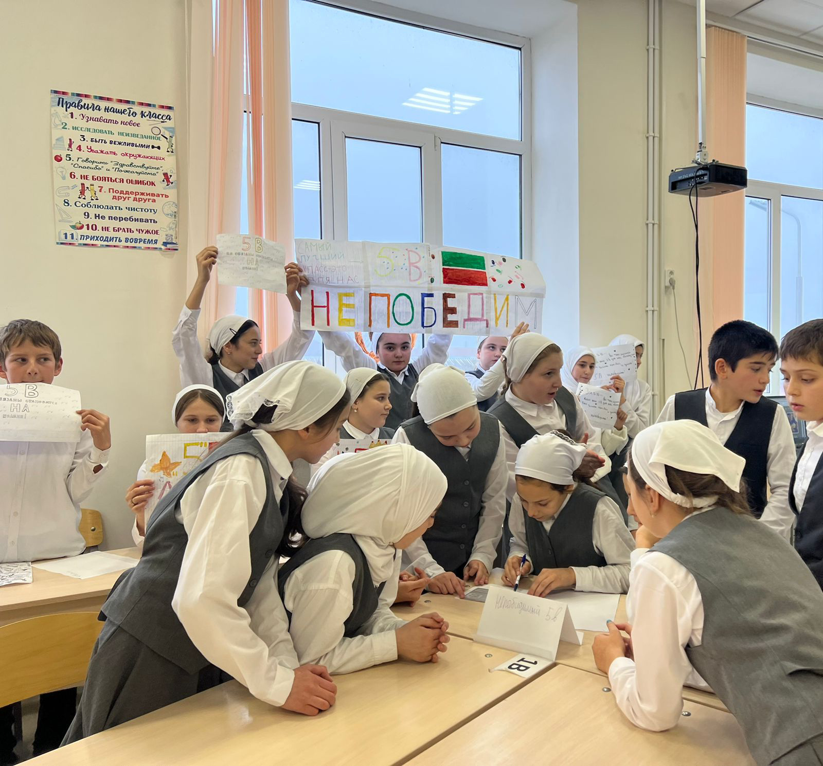 Игра состояла из нескольких этапов. Командам классов раздали тестовые задания, совещаясь, участники выбирали правильные ответы.