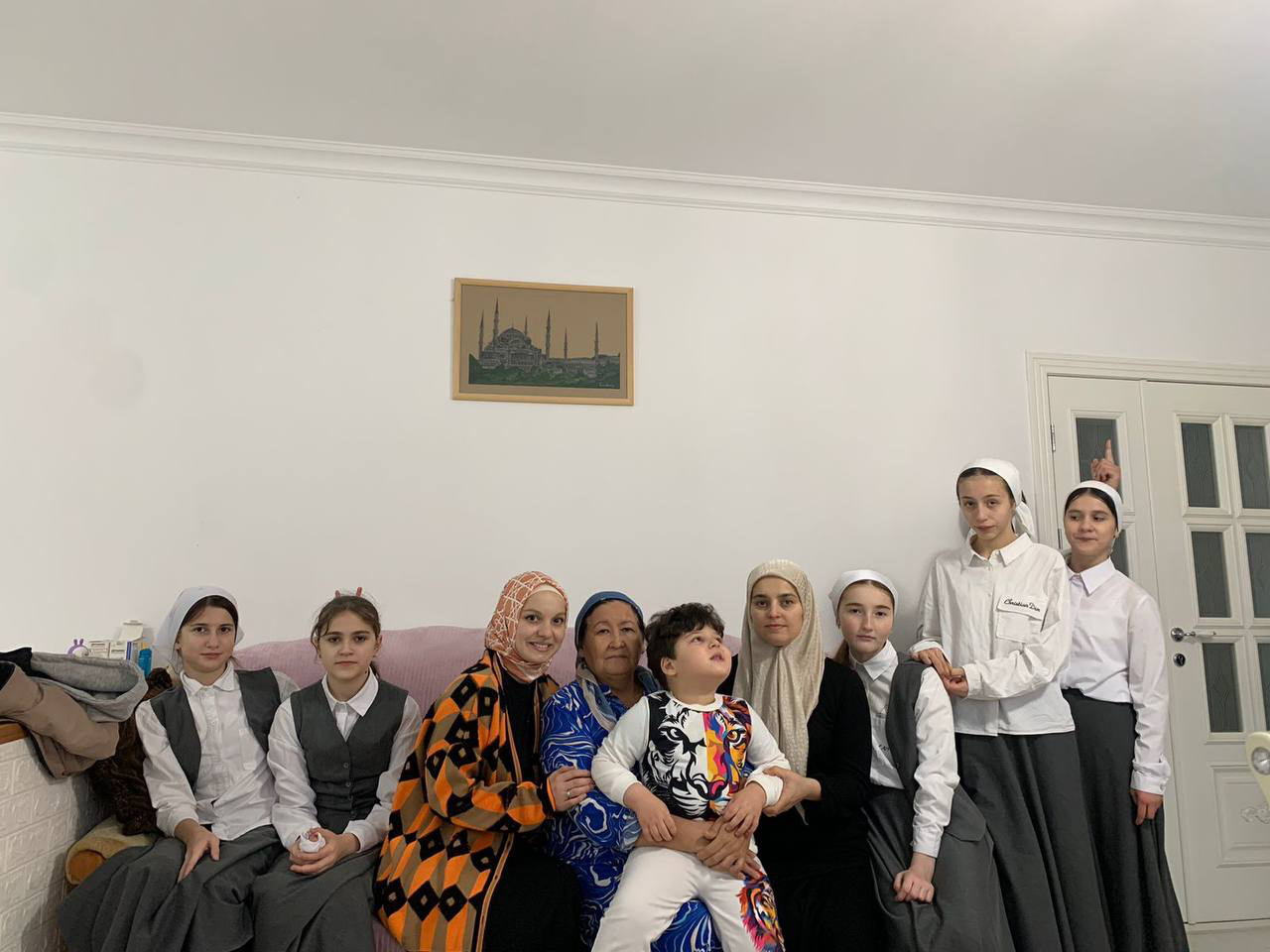 В этот, поистине, добрый день учащиеся 7 «в» класса с классным руководителем Абдурахмановой М. А. посетили семью Абдулаева Абдул Азима.