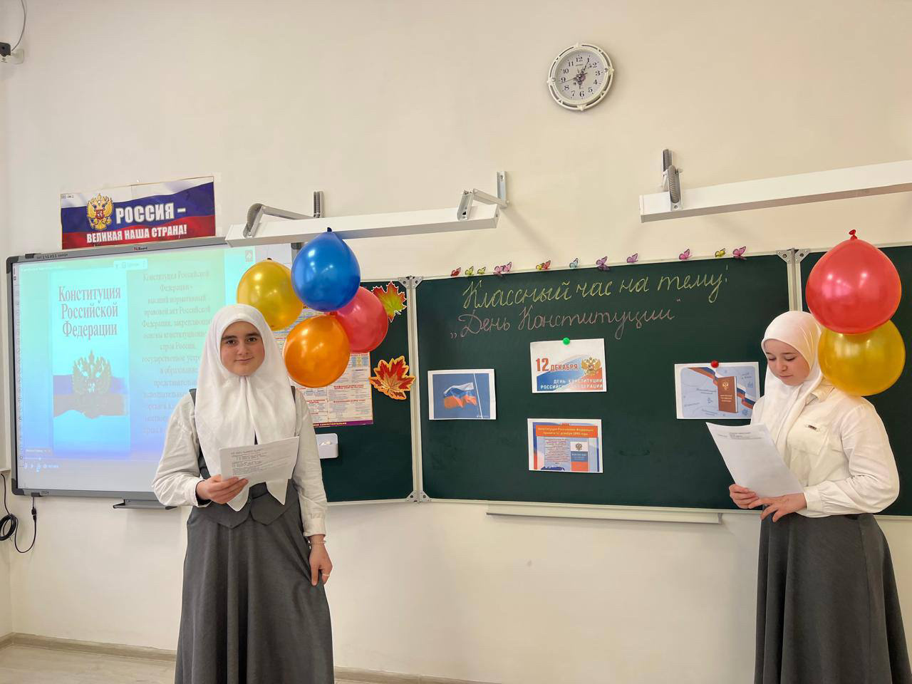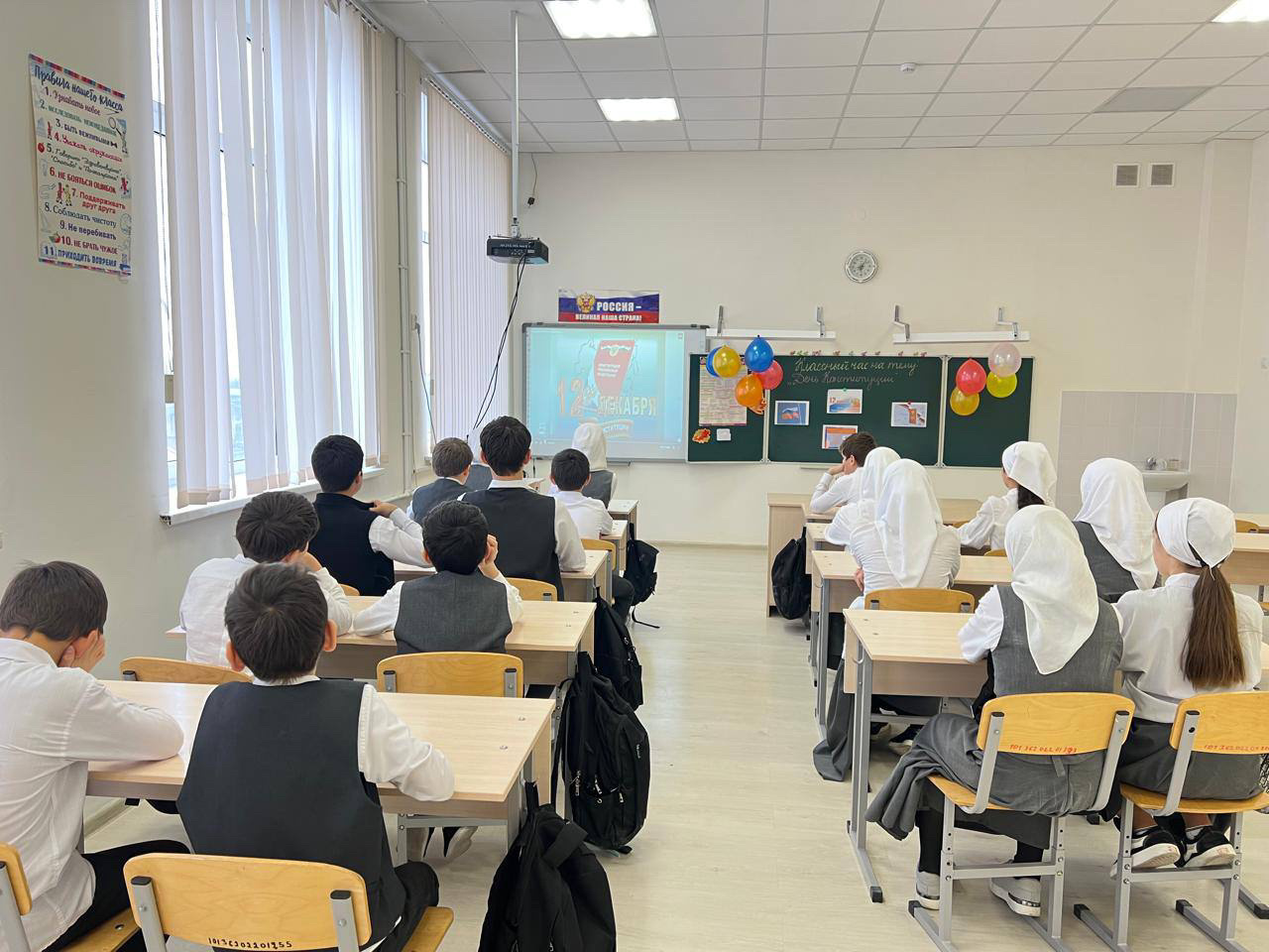 Ходумова Э. А. объяснила учащимся что такое Конституция, что благодаря принятию Конституции Россия сделала важный шаг в построении демократического государства, основанного на принципе равенства, гуманизма, мира и согласия.