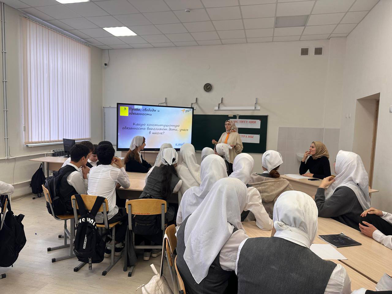 В МБОУ «Новотерская СОШ им. Э. Хамидова» советник директора Шуайпова М. М. провела среди учащихся 9 классов интеллектуальную игру «Конституция моей страны», приуроченную Дню конституции Российской Федерации.