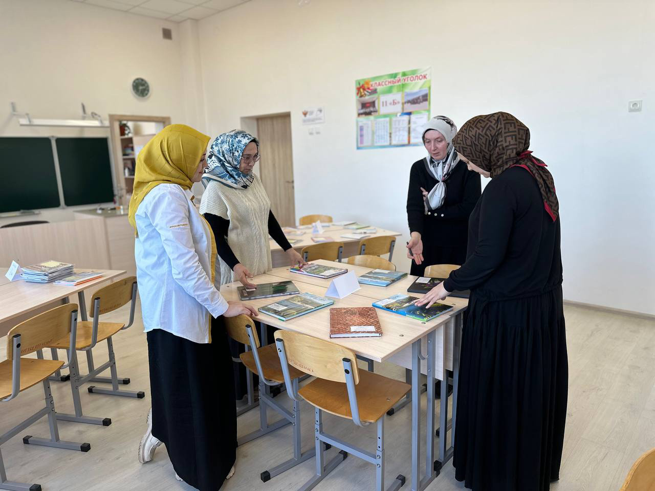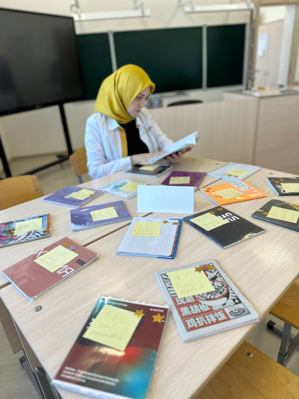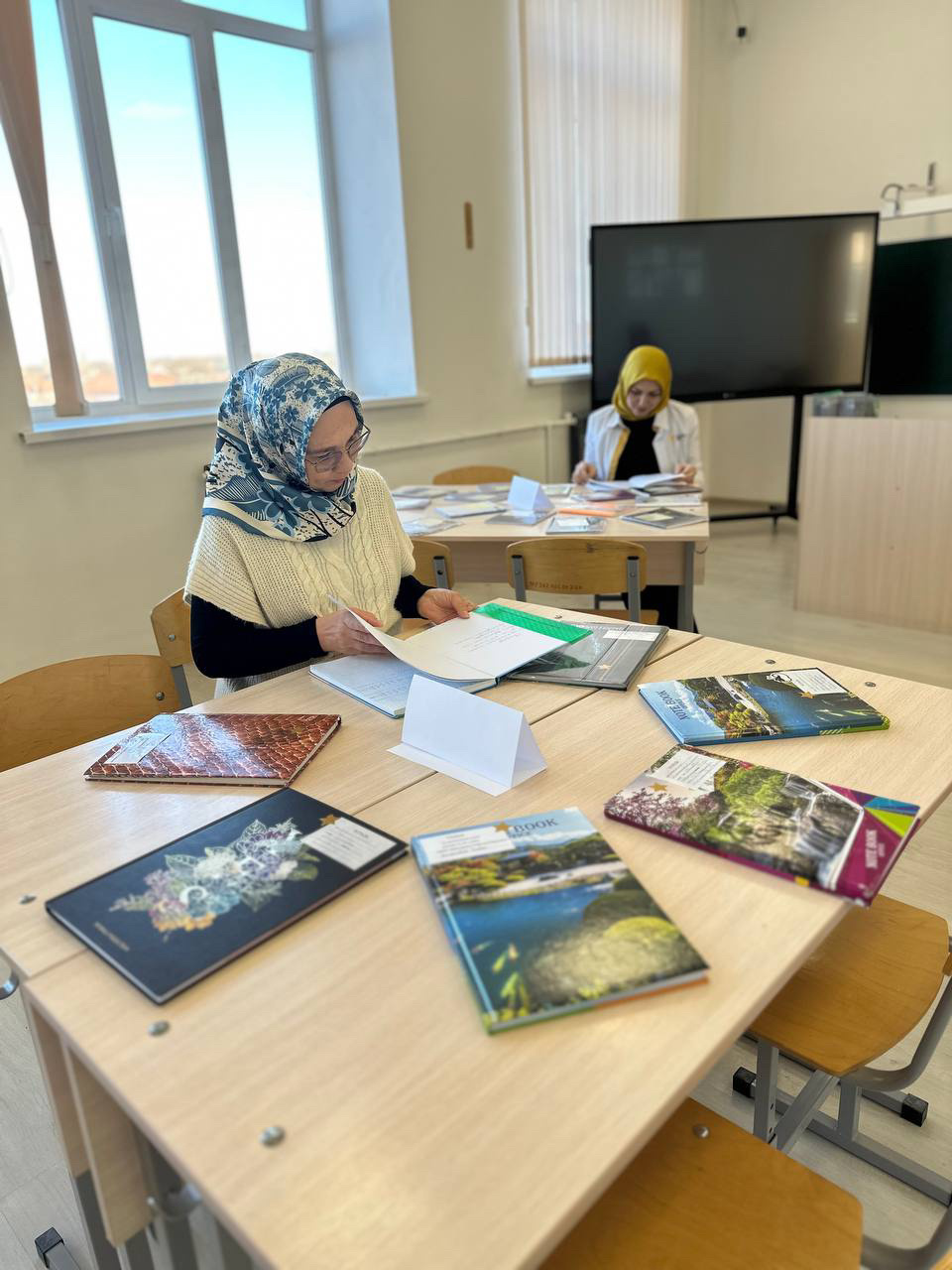 Под руководством Марьям Юсуповны, оценивали и выбирали лучшую тетрадь среди представленных, комиссия в лице директора Идрисовой З. А, советника директора Шуайповой М. М. и учителя английского языка Абдулаевой С. Я..