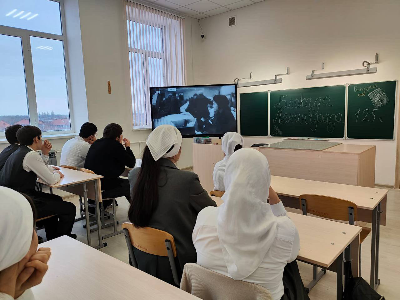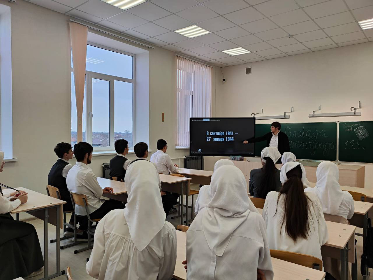 В МБОУ «Новотерская СОШ им. Э. Хамидова» классный руководитель 11 б класса Махтиева М. Ю. провела классный час «Блокада Ленинграда», посвященный Дню снятия блокады Ленинграда.