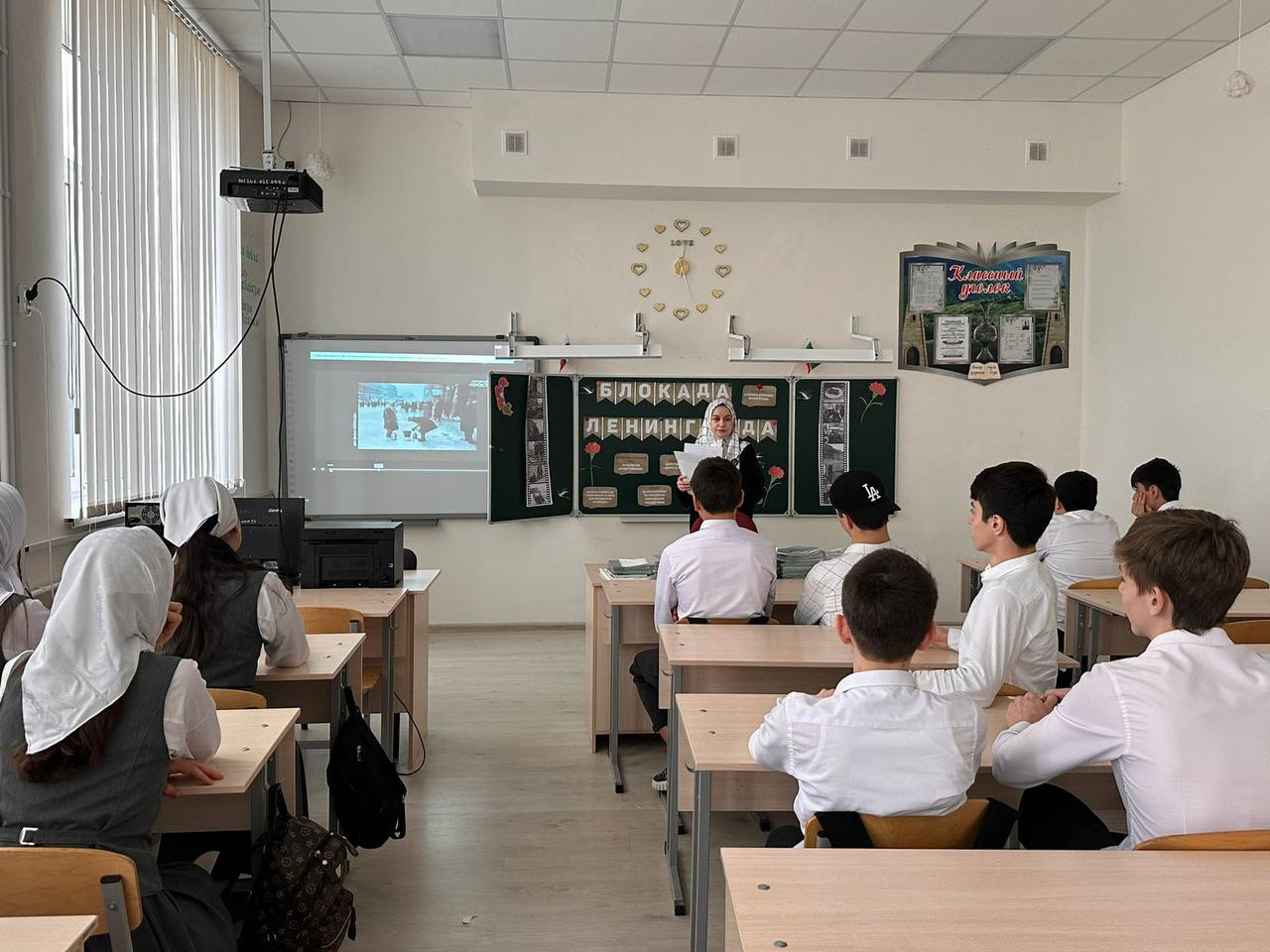 Классный руководитель 9 «б» класса Межиева А. И. провела с обучающимися классный час на тему «Блокада Ленинграда».