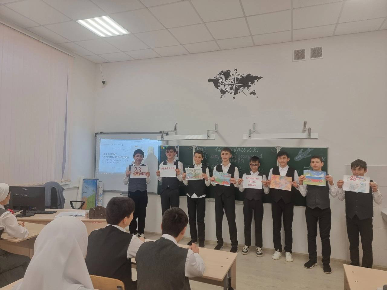 Также, в ходе беседы учащиеся размышляли над тем, что значит служить Отечеству и пришли к выводу, что служение Отечеству не только военная обязанность, но и деятельная любовь к Родине, стремление к ее процветанию и защите.