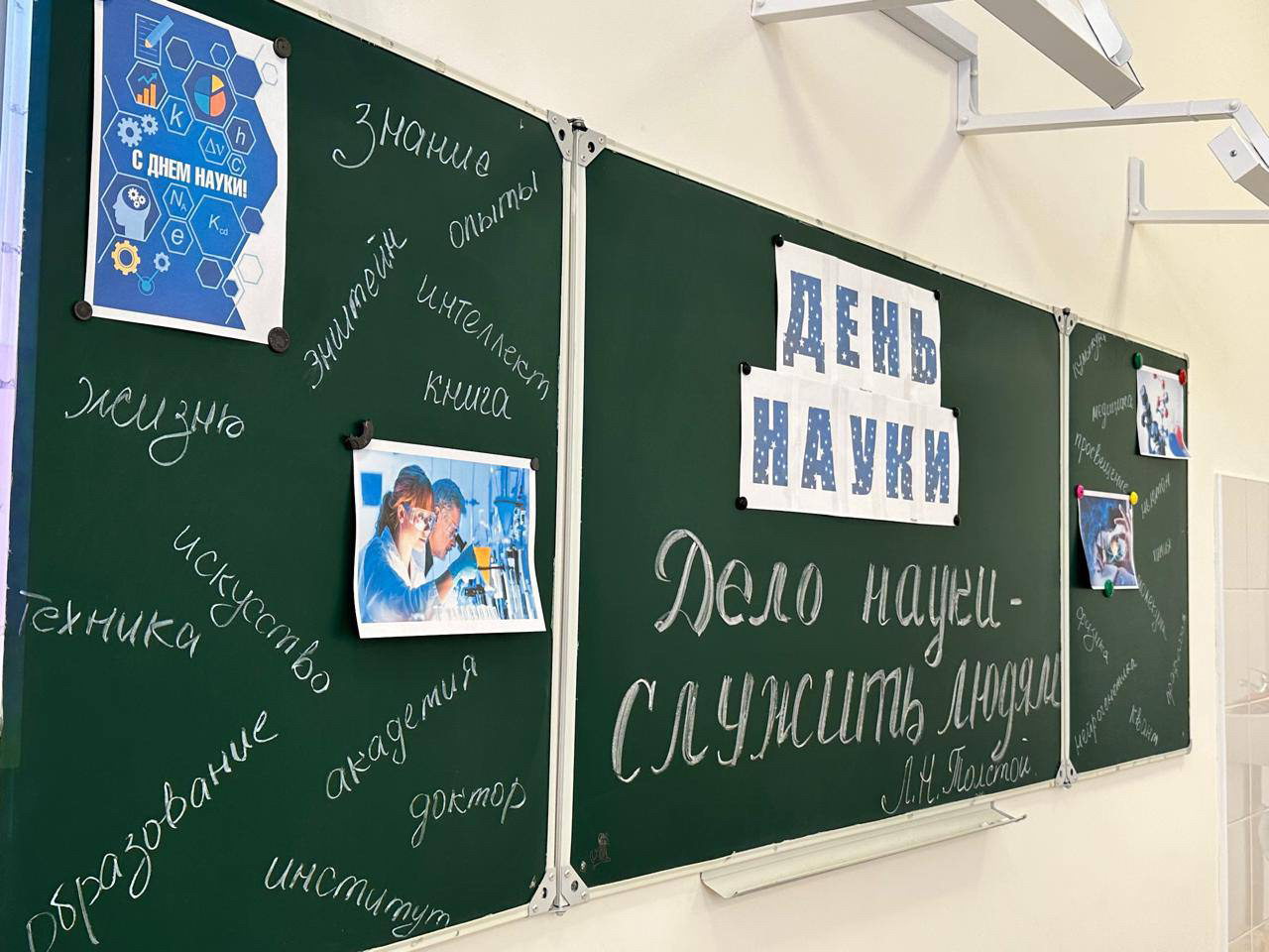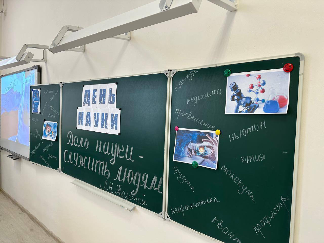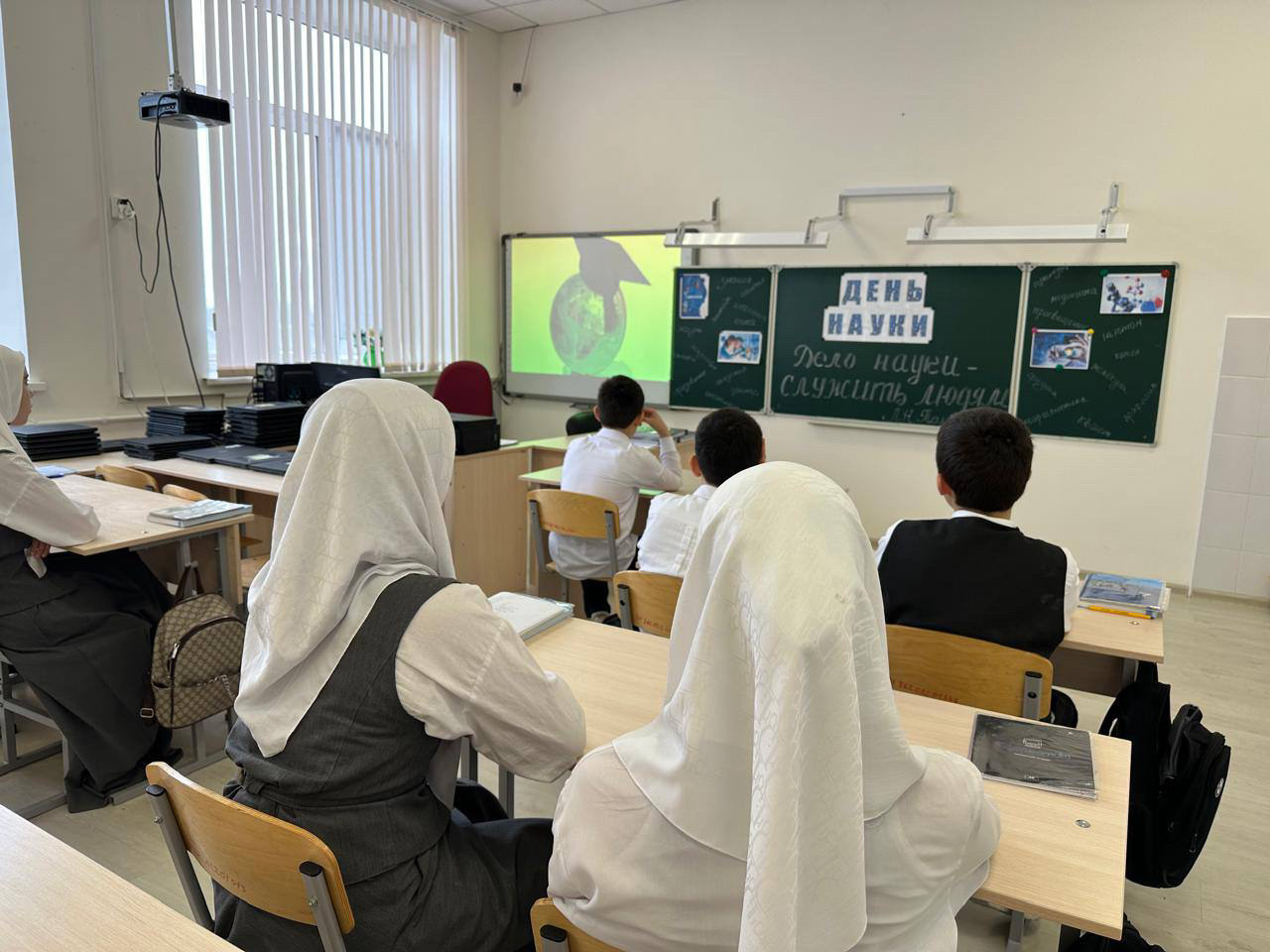 Свою беседу Салатова З. И. начала со слов Л. Н. Толстого: «Дело науки-служить людям». В ходе классного часа с учащимися говорили о науке и ученных, об их роли в истории развития государства.