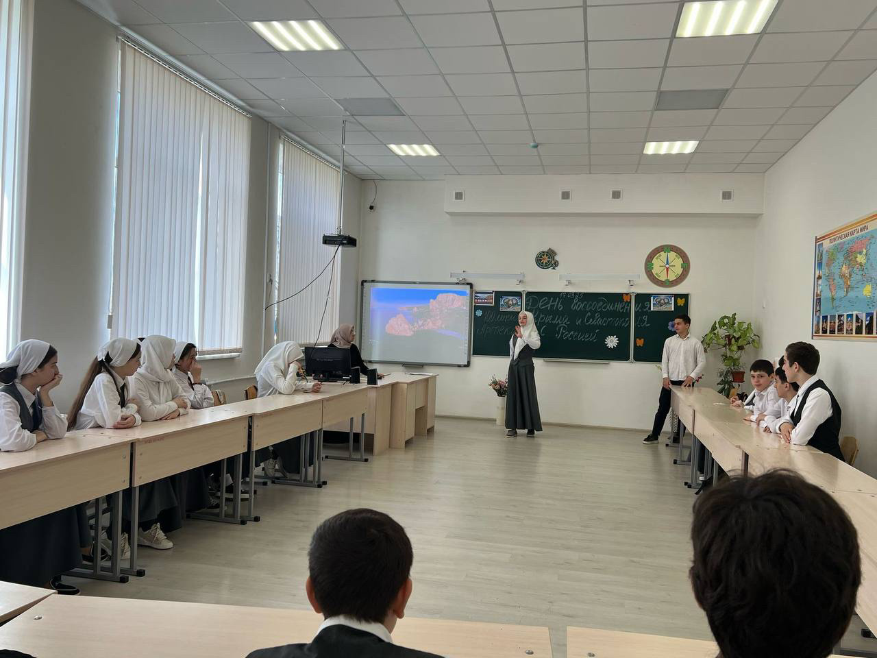 Традиционно каждая новая учебная неделя в МБОУ «Новотерская СОШ им. Э. Хамидова» начинается с бесед в рамках проекта «Разговоры о важном».