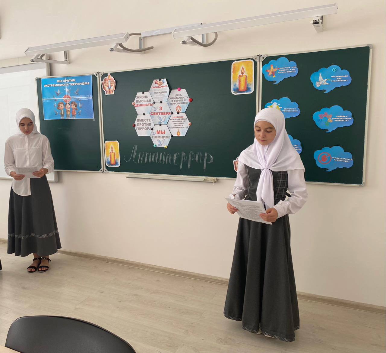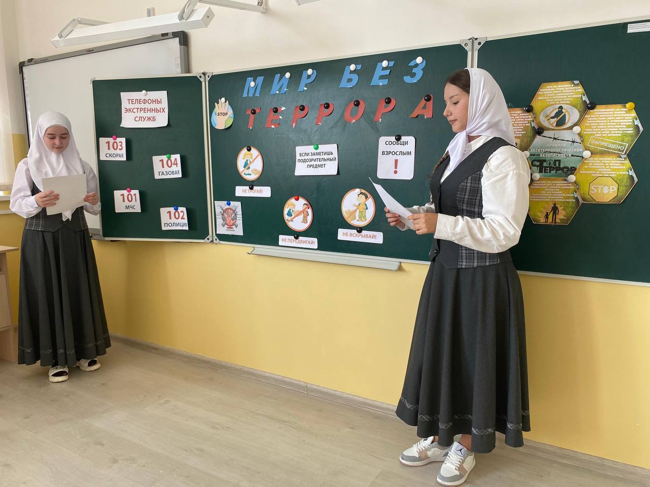 В МБОУ «Новотерская СОШ им. Э. Хамидова» в целях профилактики экстремизма и терроризма и воспитания толерантности прошли классные часы по теме «Антитеррор», приуроченные Дню солидарности в борьбе с терроризмом.