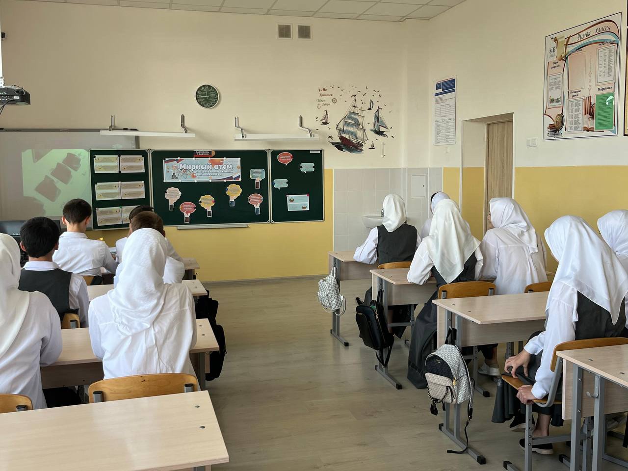 После линейки учащиеся 5-11 классов разошлись по кабинетам на беседы «Разговоры о важном».