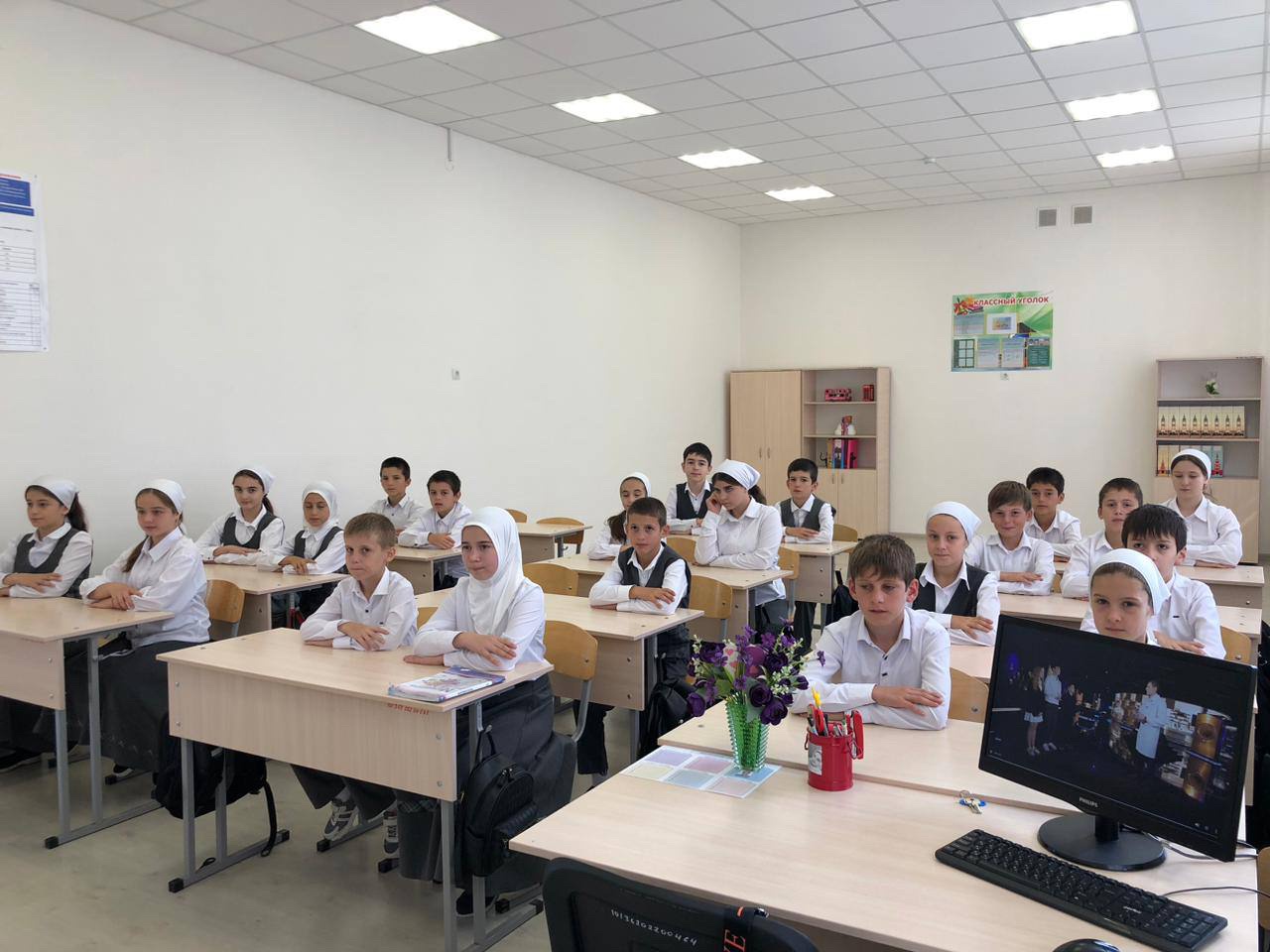 Новая учебная неделя в МБОУ «Новотерская СОШ им. Э Хамидова» началась с торжественной линейки в честь поднятия знамен Российской Федерации и Чеченской республики.