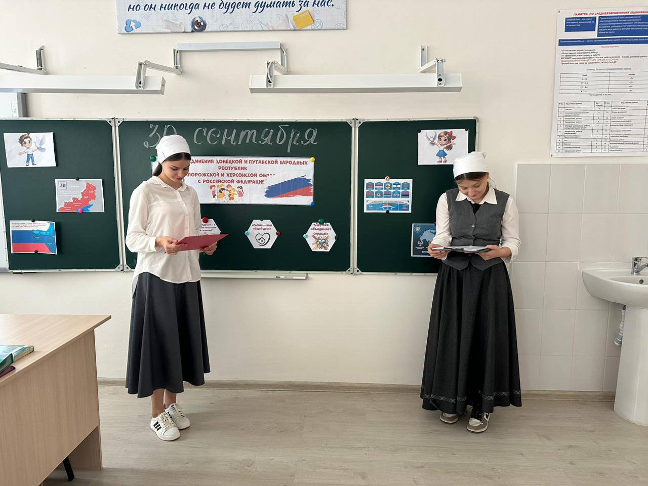 30 сентября - День воссоединения Донецкой Народной Республики, Луганской Народной Республики, Запорожской области и Херсонской области с Российской Федерацией. В честь такого знаменательного события в МБОУ «Новотерская СОШ им. Э. Хамидова» классный руководитель 9 «в» класса Салатова З. И. провела классный час.