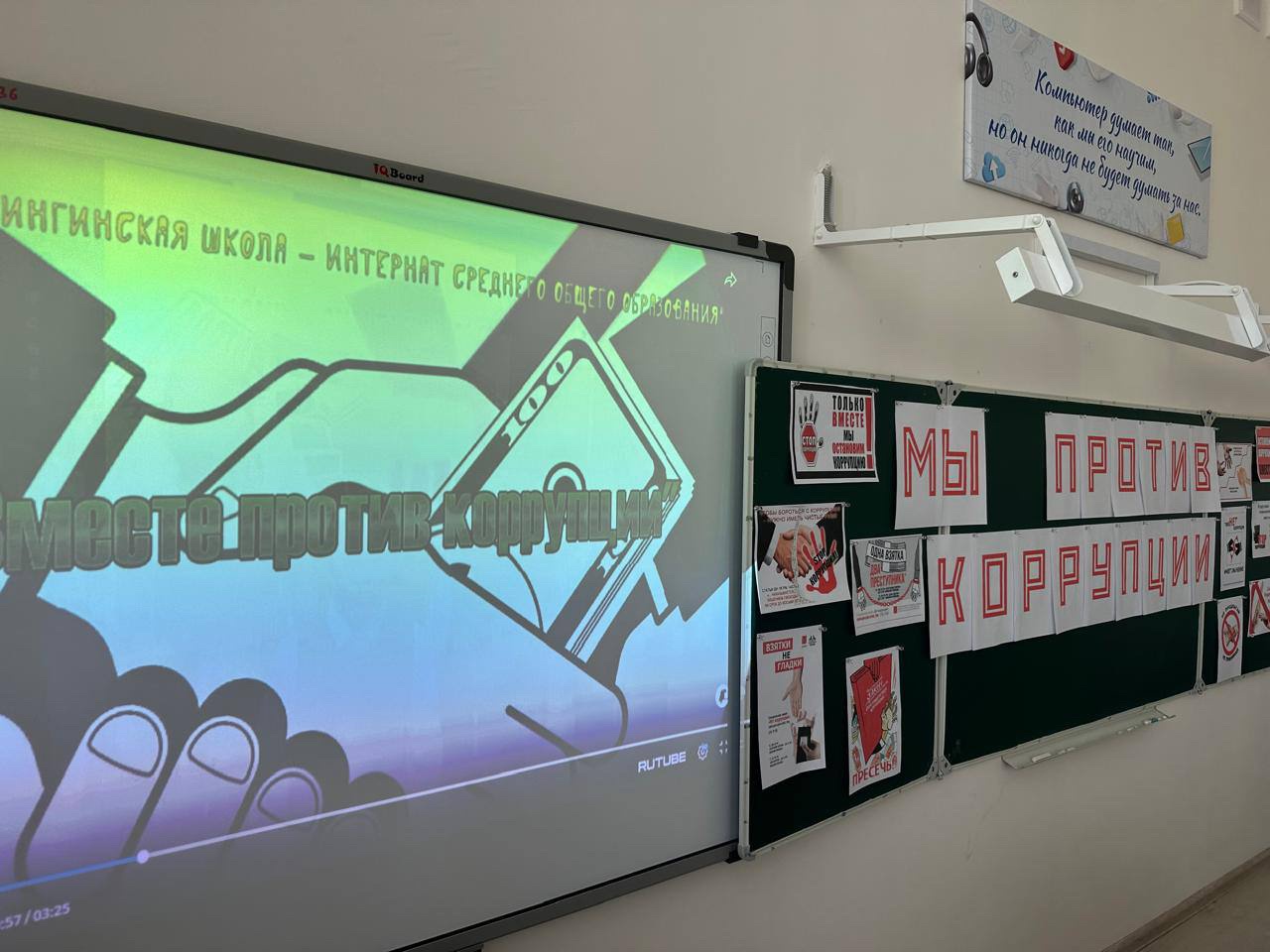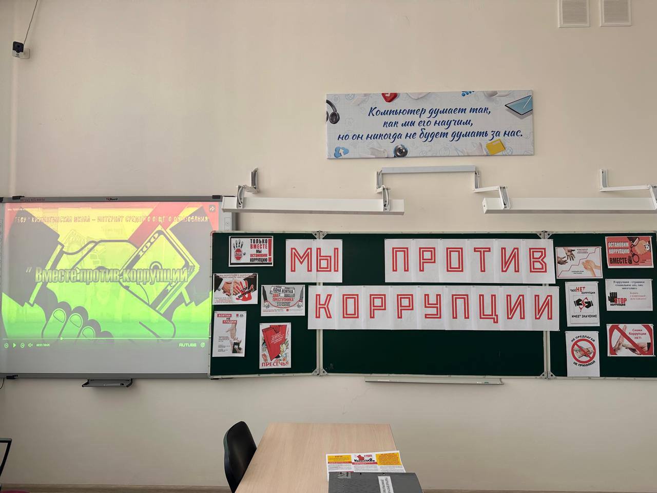 В целях расширения кругозора обучающихся, развитие основ поисковой деятельности, формирования собственного мировоззрения на проблемы современного общества, ознакомления с понятием «коррупция» и ее формами 27 октября в МБОУ «Новотерская СОШ им. Э. Хамидова» среди 9-х классов прошел классный час «Мы против коррупции»
