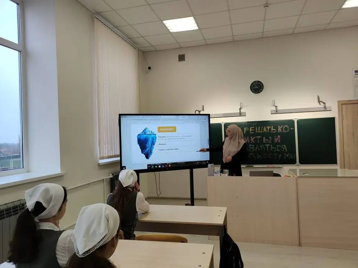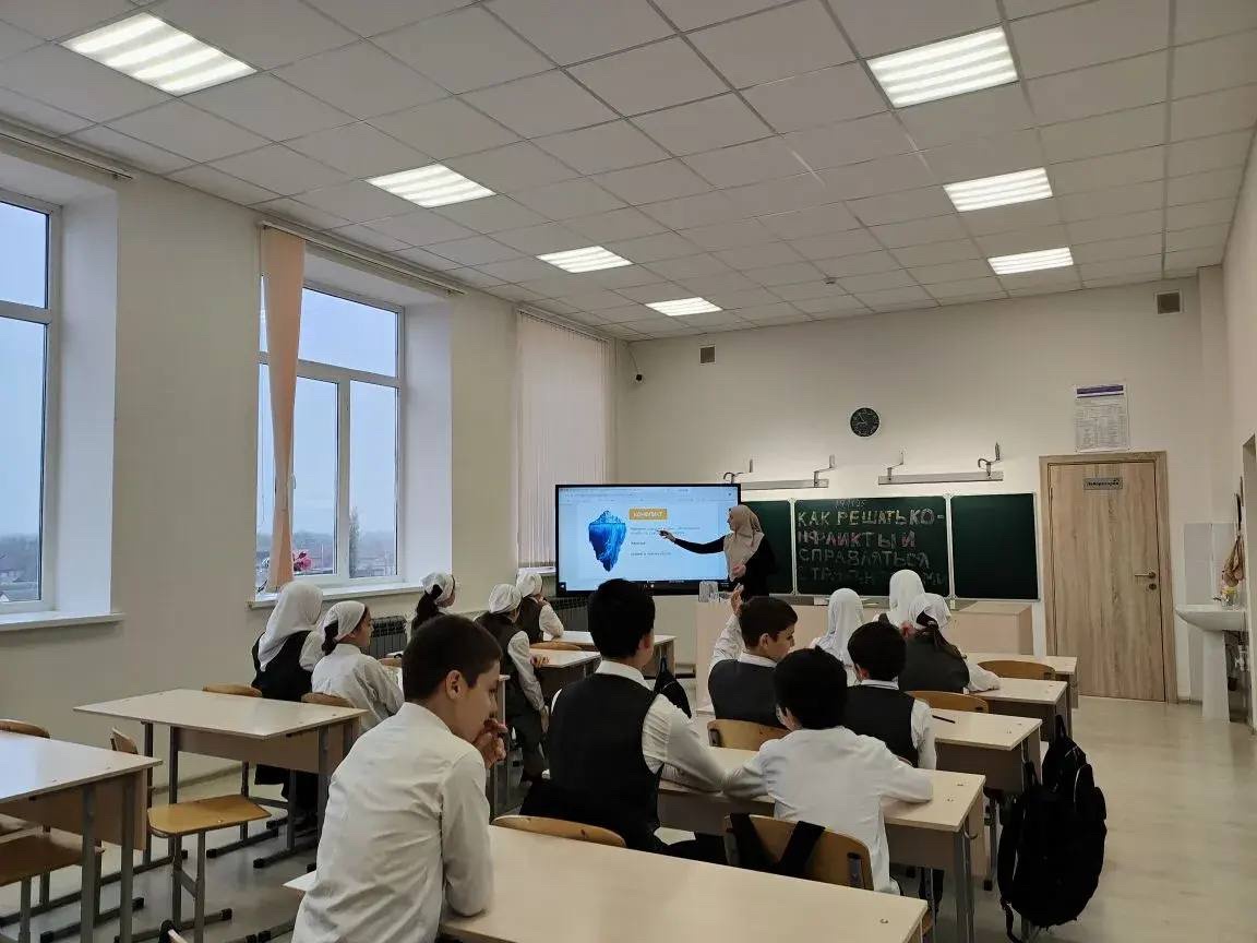 17.11.2025 в МБОУ «Новотерская СОШ им. Э. Хамидова» в рамках проекта «Разговор о важном» были проведены беседы с учащимися 5–11 классов по теме «Как решать конфликты и справляться с трудностями».