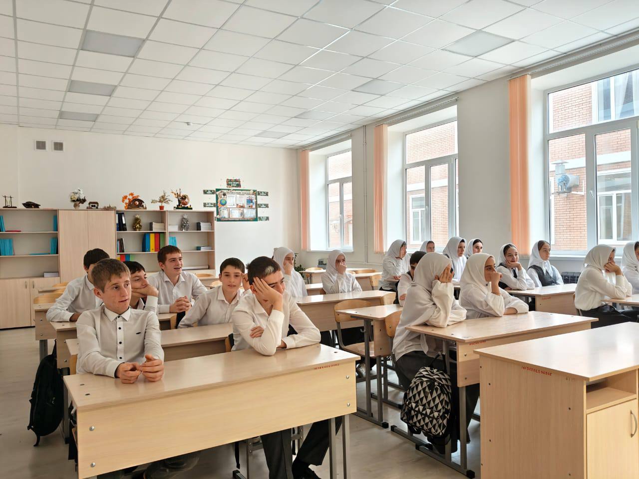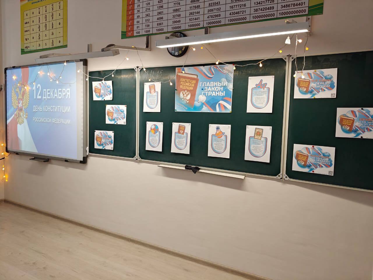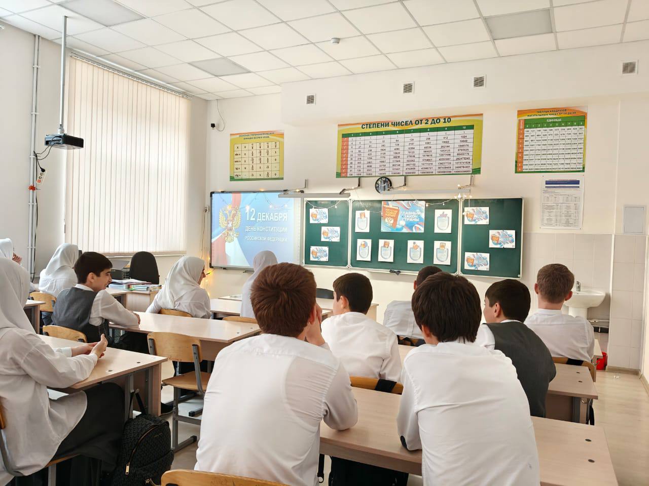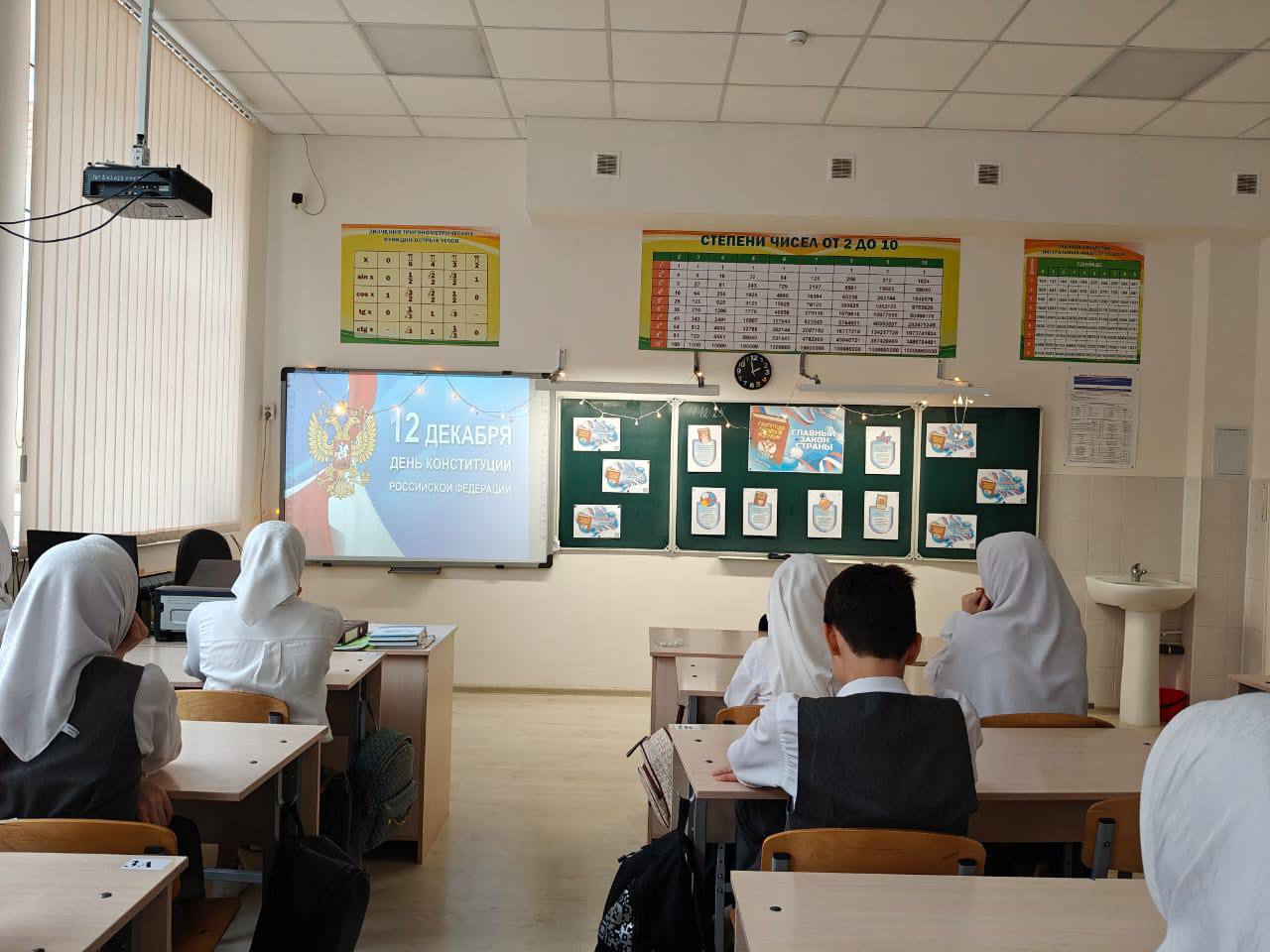 Классный руководитель 8 «б» класса Муридова Р.А., провела с учащимися классный час на тему: «День Конституции»