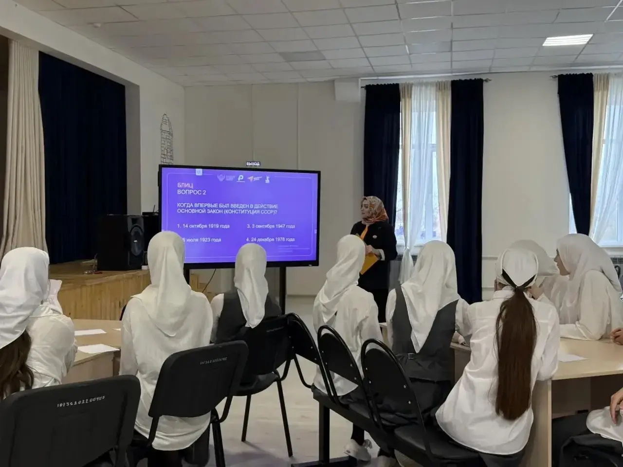 С целью ознакомления учащихся с историей и значением Дня Конституции, а также с ролью основного закона в жизни государства и граждан, в МБОУ «Новотерская СОШ им. Э. Хамидова» между классами 9А и 9Г прошёл урок-игра.