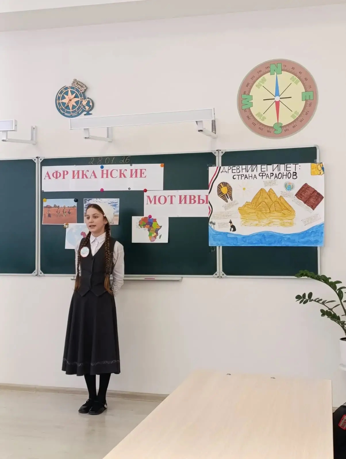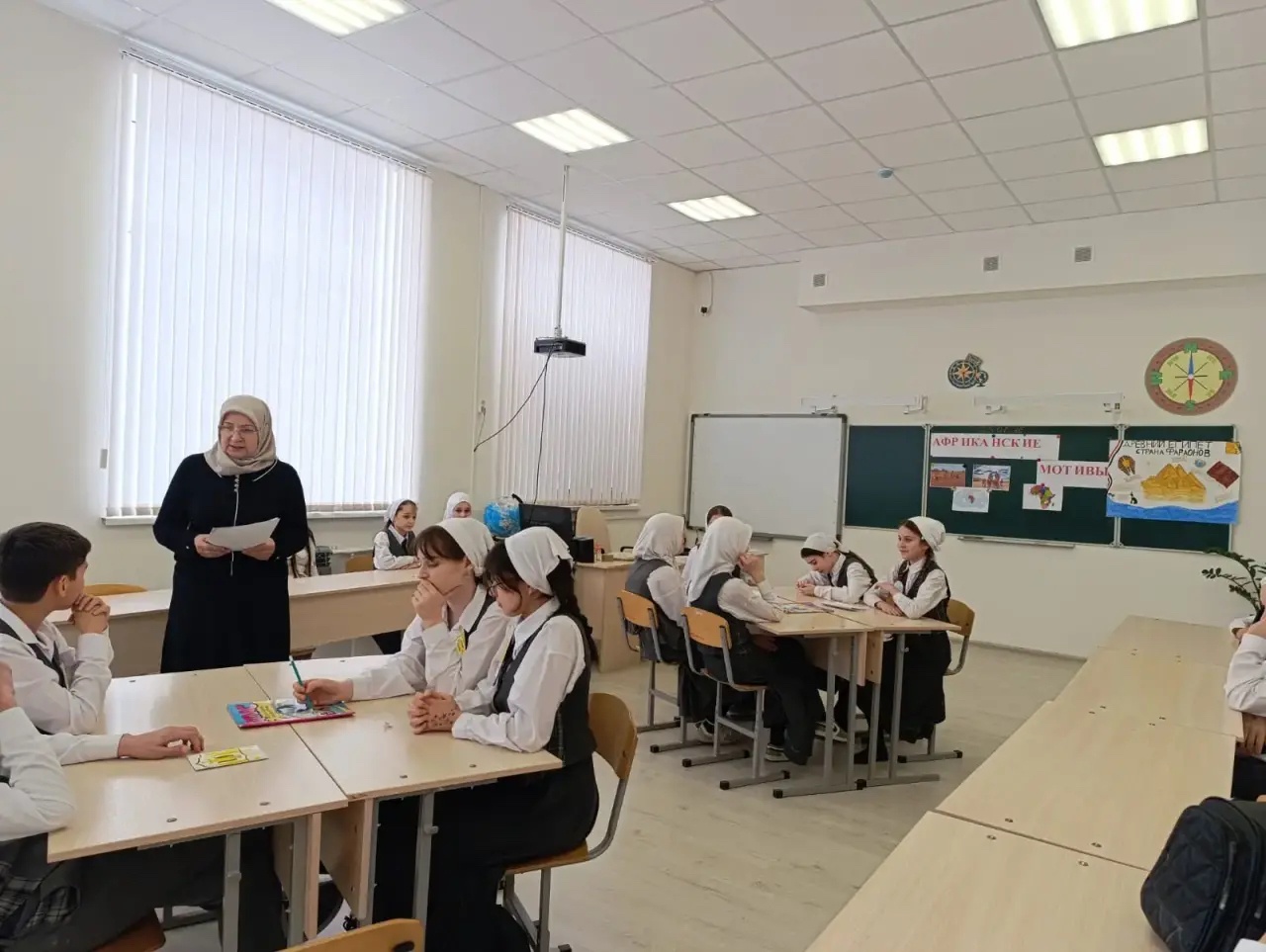 В целях закрепления знаний по географии, систематизации учебного материала и формирования любви к предмету, 28 января в МБОУ «Новотерская СОШ им. Э. Хамидова» был проведен урок-игра на тему «Африканские мотивы». Мероприятие состоялось между учениками 7а и 7б классов. Целью урока было проверка знаний учащихся о географическом положении Африки, её рельефе, климате, природных зонах, народах и странах континента