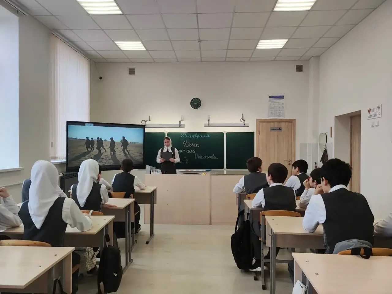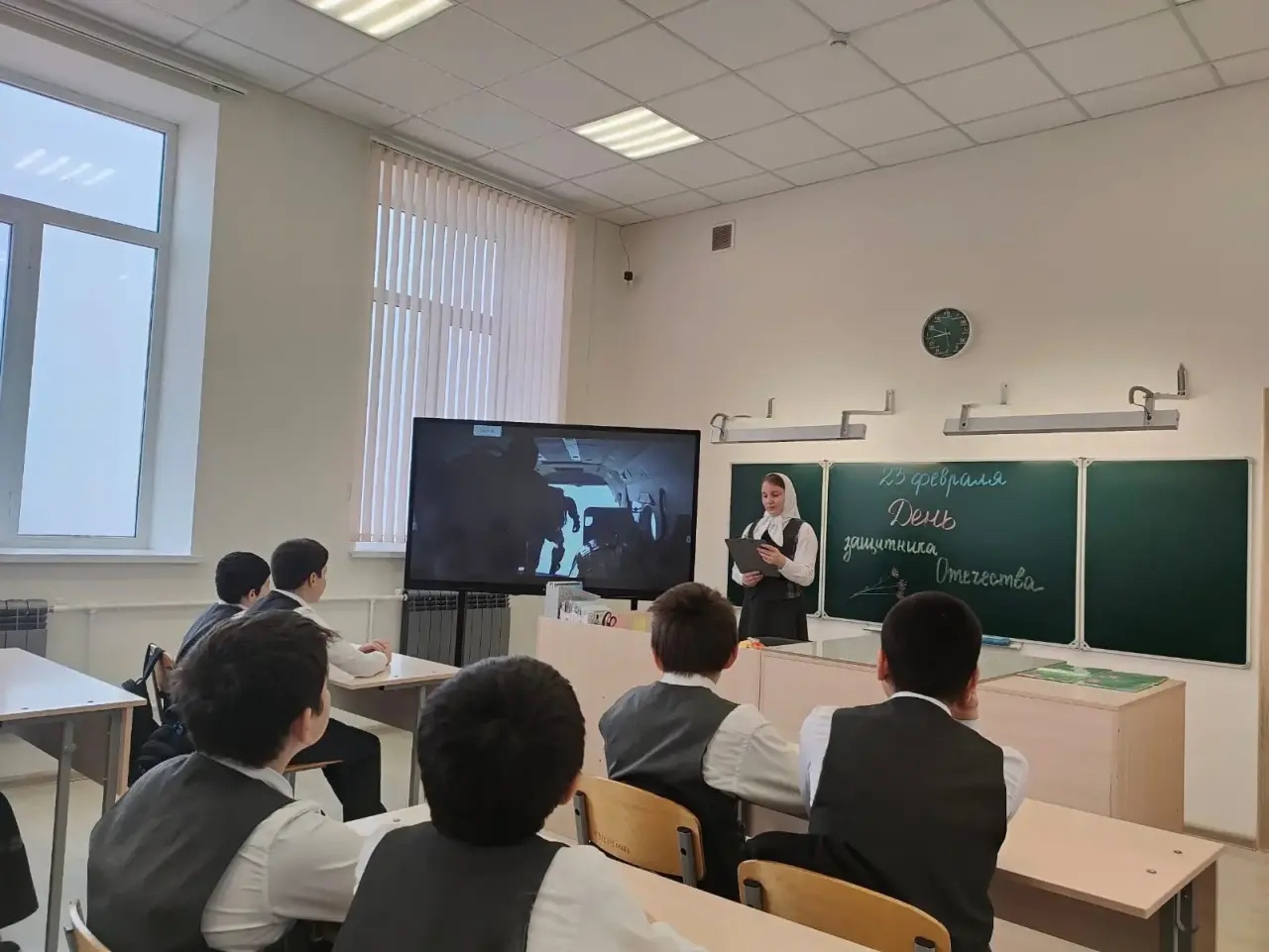 16.02.26г Классный руководитель 6в класса Махтиева М.Ю провела классный час на тему: «День защитника Отечества»