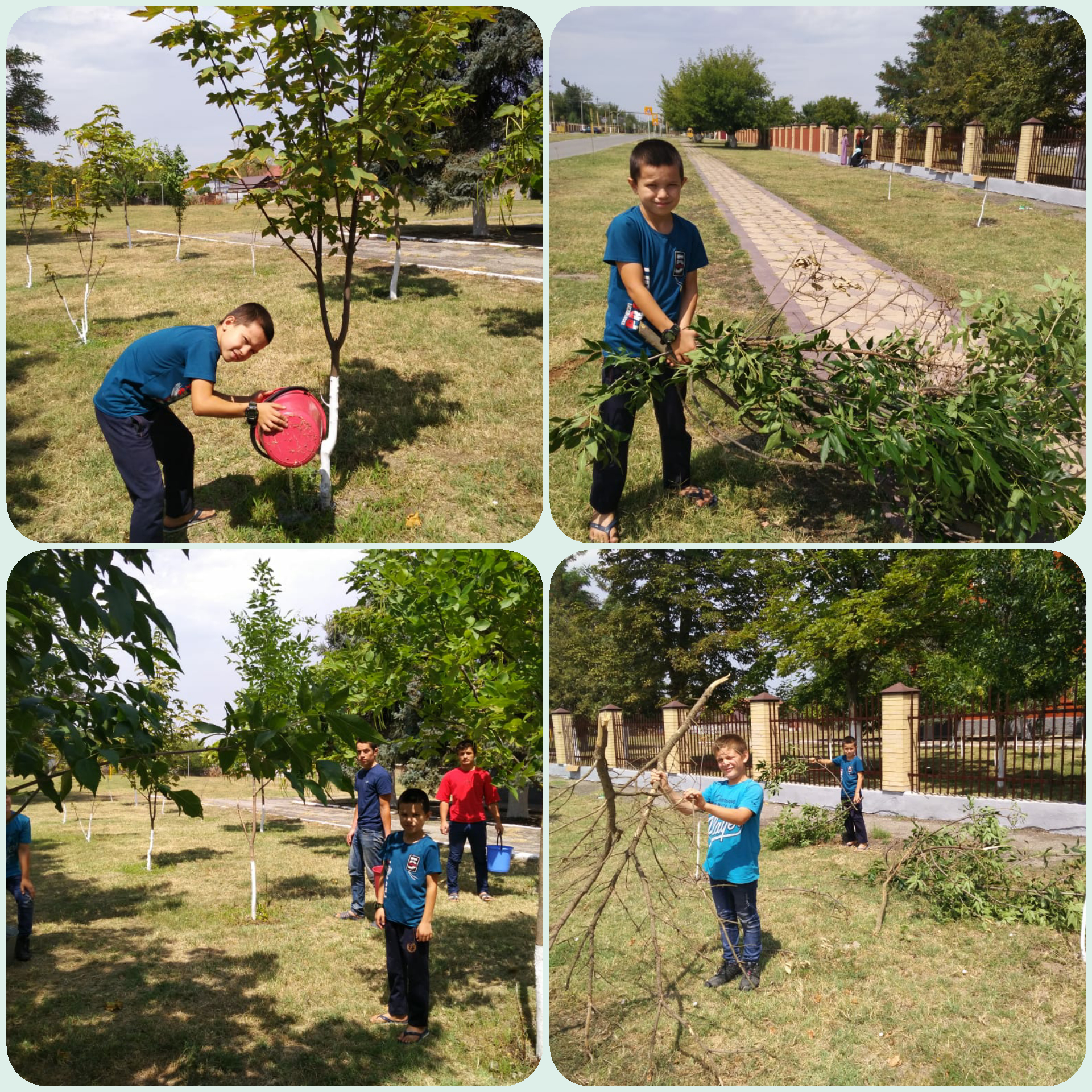 В течение лета учащиеся школы поливали, ухаживали за молодыми саженцами.